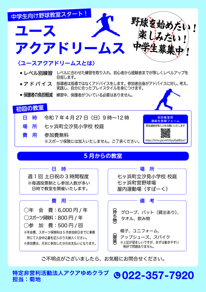 4. 中学生向け野球教室をスタートします!